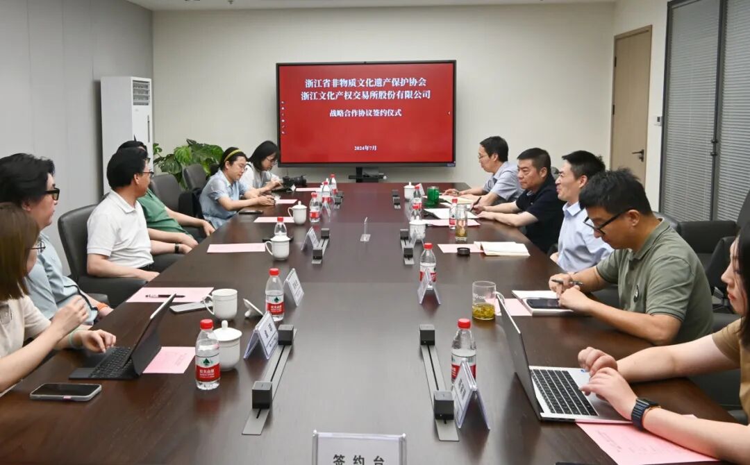 7月11日下午,省文投集团下属浙江文交所和浙江省非遗协会签署战略合作协议。省文投集团党委委员、副总经理尤匡领,浙江省非遗协会会长叶菁出席签约仪式并讲话。合作单位相关领导参加签约仪式。